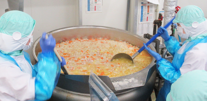 - 日々の検食をもとに製造工程や調理方法を見直し、食味向上に繋げる。